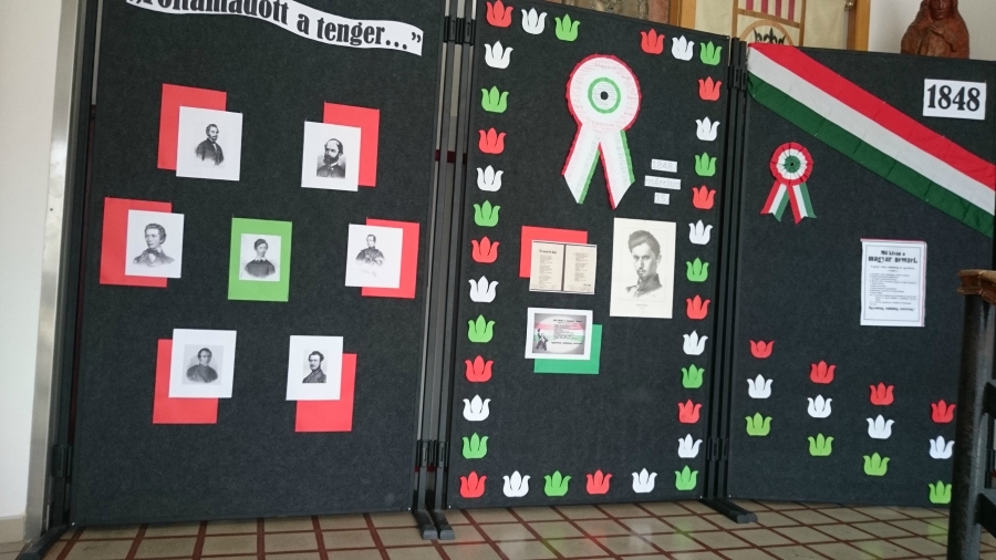 Március 14-én a déli harangszó után a diákok az udvaron gyülekeztek az ünnepélyesen feldíszített színpad előtt. A hagyományokhoz híven a műsort a 4. évfolyam tanulói adták.